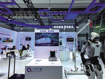 图为第四届北斗界限行使国外峰会上展出的“时空算力背包”和“青龙Pro”东谈主形机器东谈主。记者 苏晓洲 摄